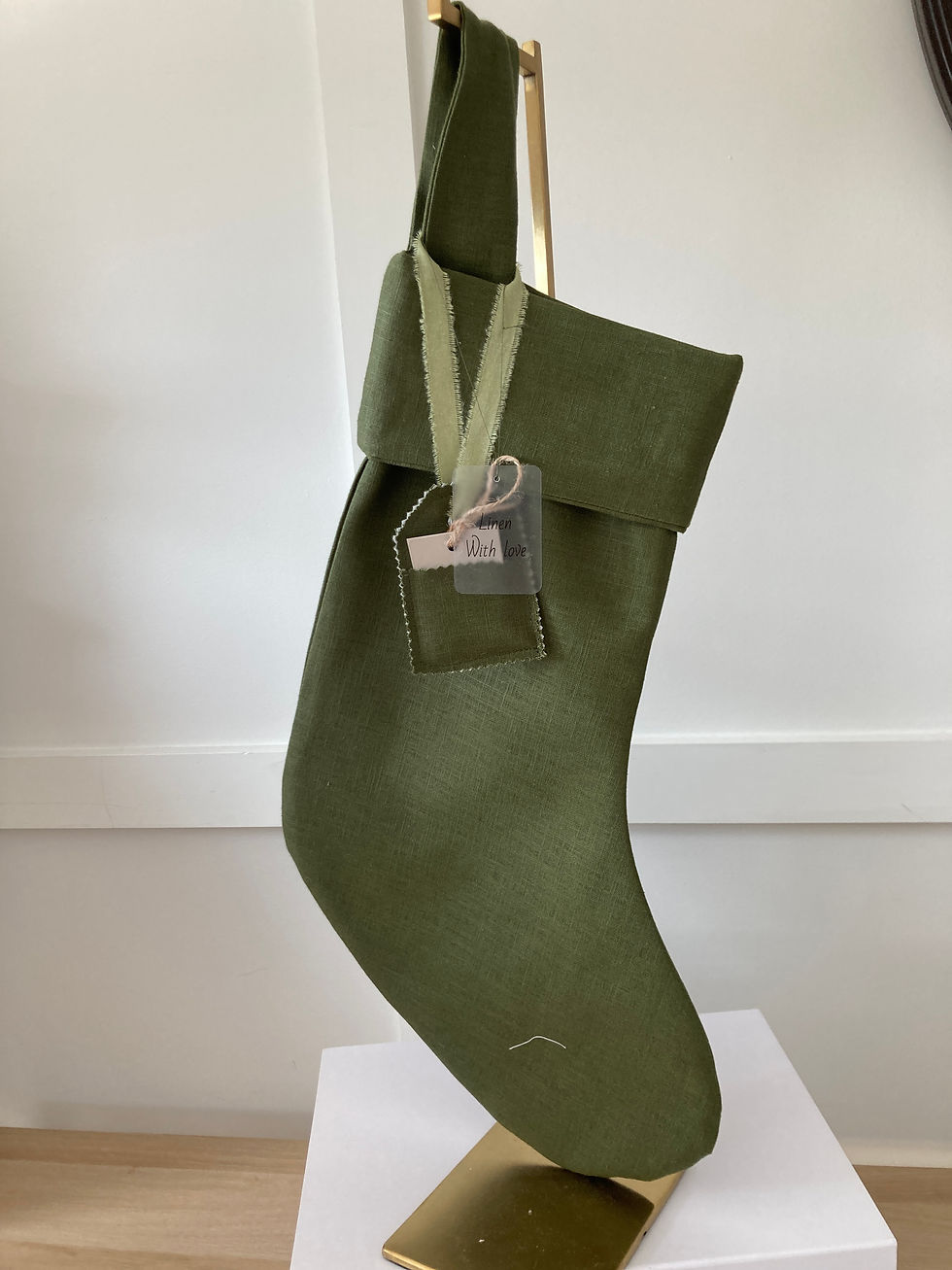 Linen hanging stocking.